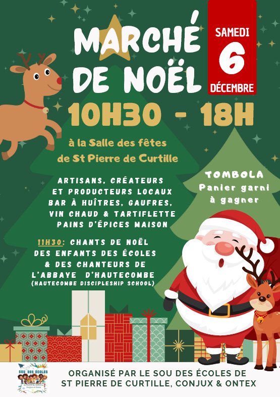 Le marché de Noël prendra possession de la salle des fêtes le samedi 6 décembre, le sou des écoles vous attend nombreux pour écouter les chants de noël et pour acheter les produits des divers artisans, créateurs et producteurs locaux.