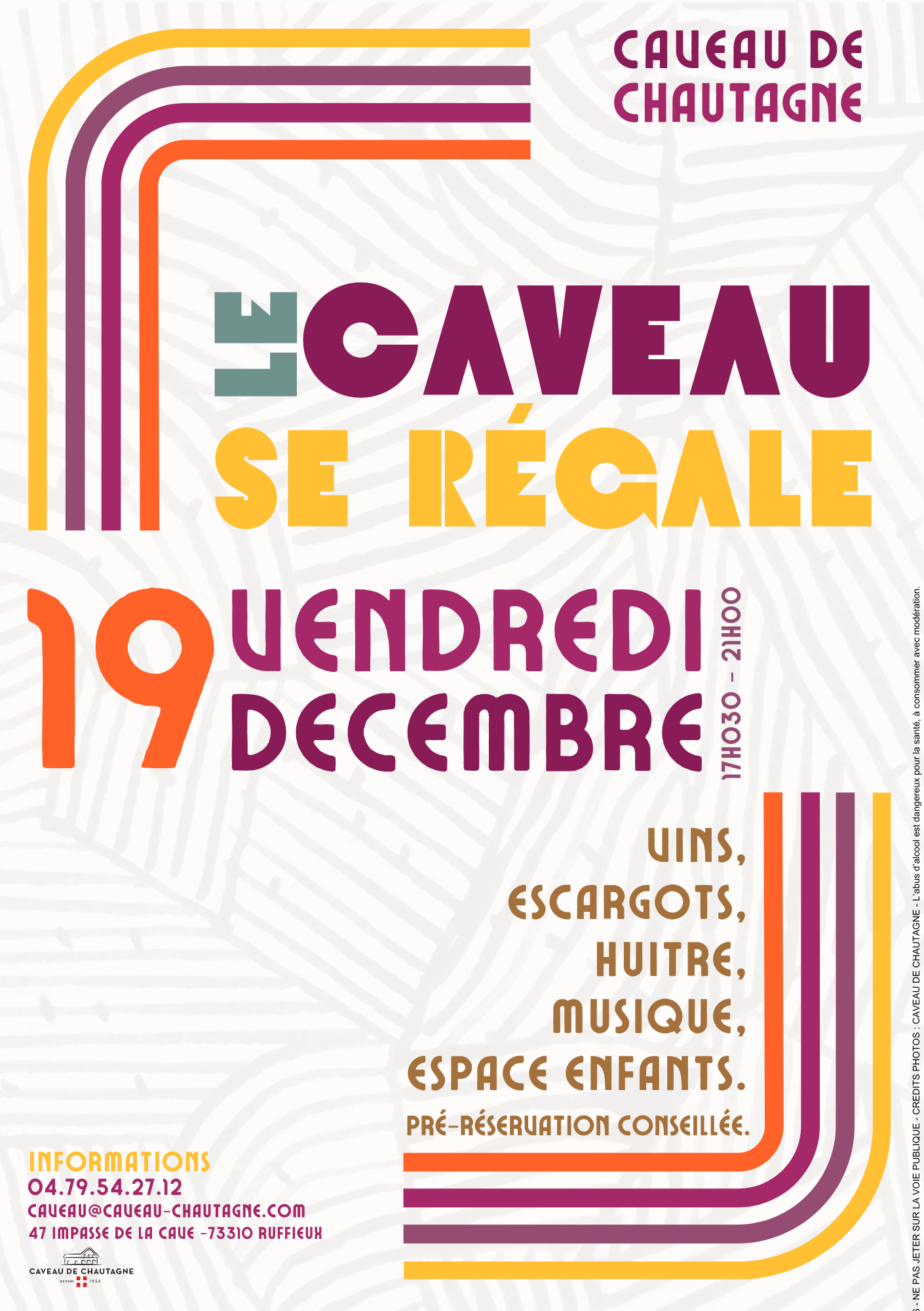 Bar avec vente de vins, pétillants et vin chaud. Dégustation d’huîtres (plateaux de 6 ou 12 à consommer sur place – réservation conseillée). Dégustation d’escargots sur place et vente à emporter par L’Escargot Chautagnard. Ambiance musicale pour un moment convivial.