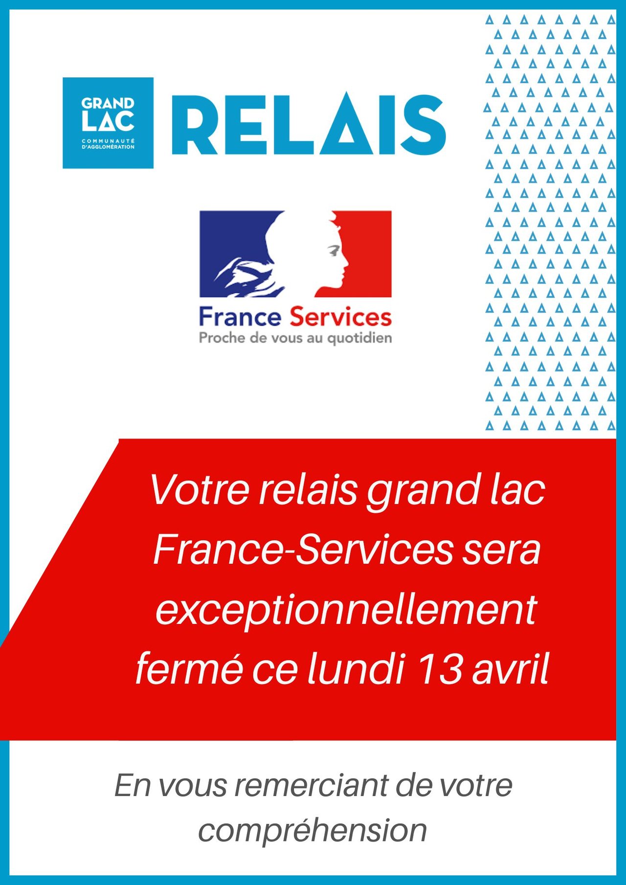 Votre France-Services exceptionnellement fermée ce lundi 13 avril.