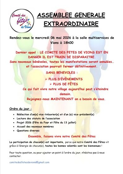 Dernier appel : le comité des fêtes de Vions est EN DANGER il est train de disparaître.