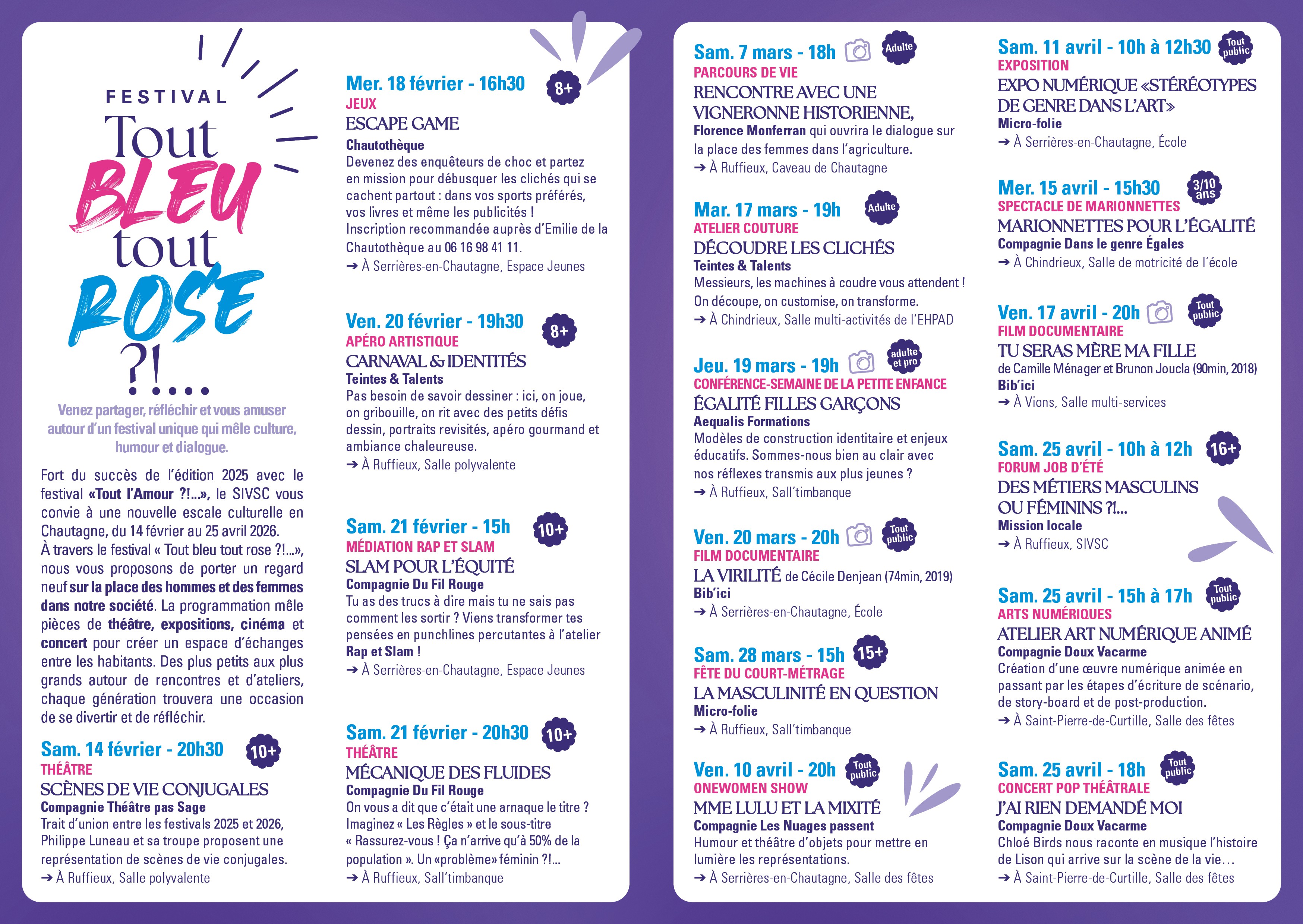 FESTIVAL 2026 "Tout Bleu tout Rose !?..."